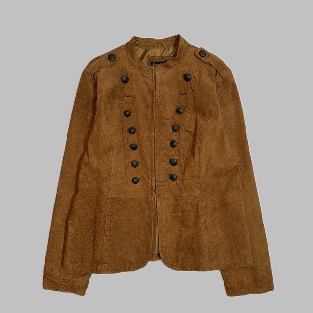 suede leather napoleon jacket size:XL 着丈:63cm 肩幅:46cm 袖丈:64cm 身幅:57cm ※こちらはヴィンテージの商品となります。僅かな汚れやシミ等がある場合がございます。 また、ご購入後の返品、返金、交換はできません。