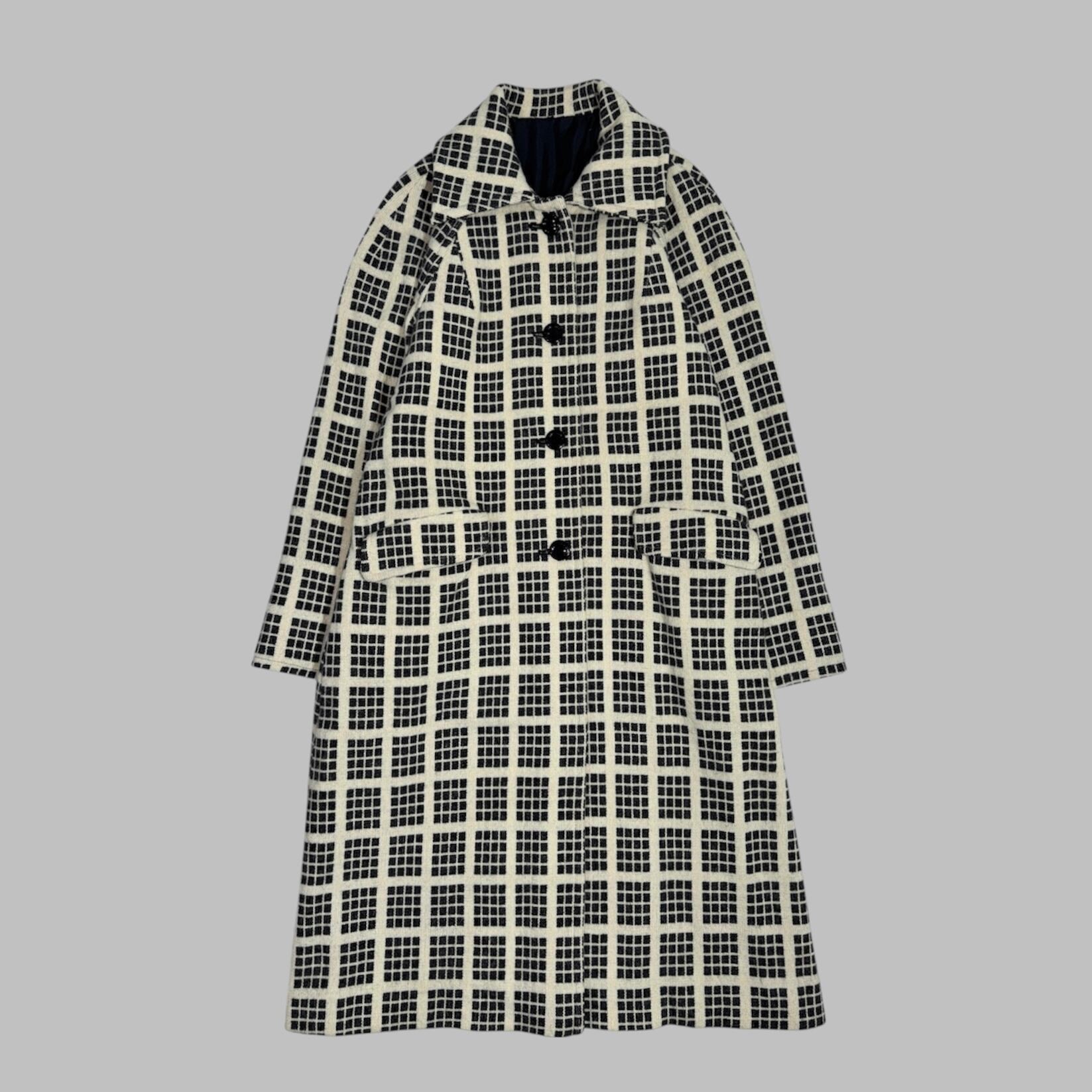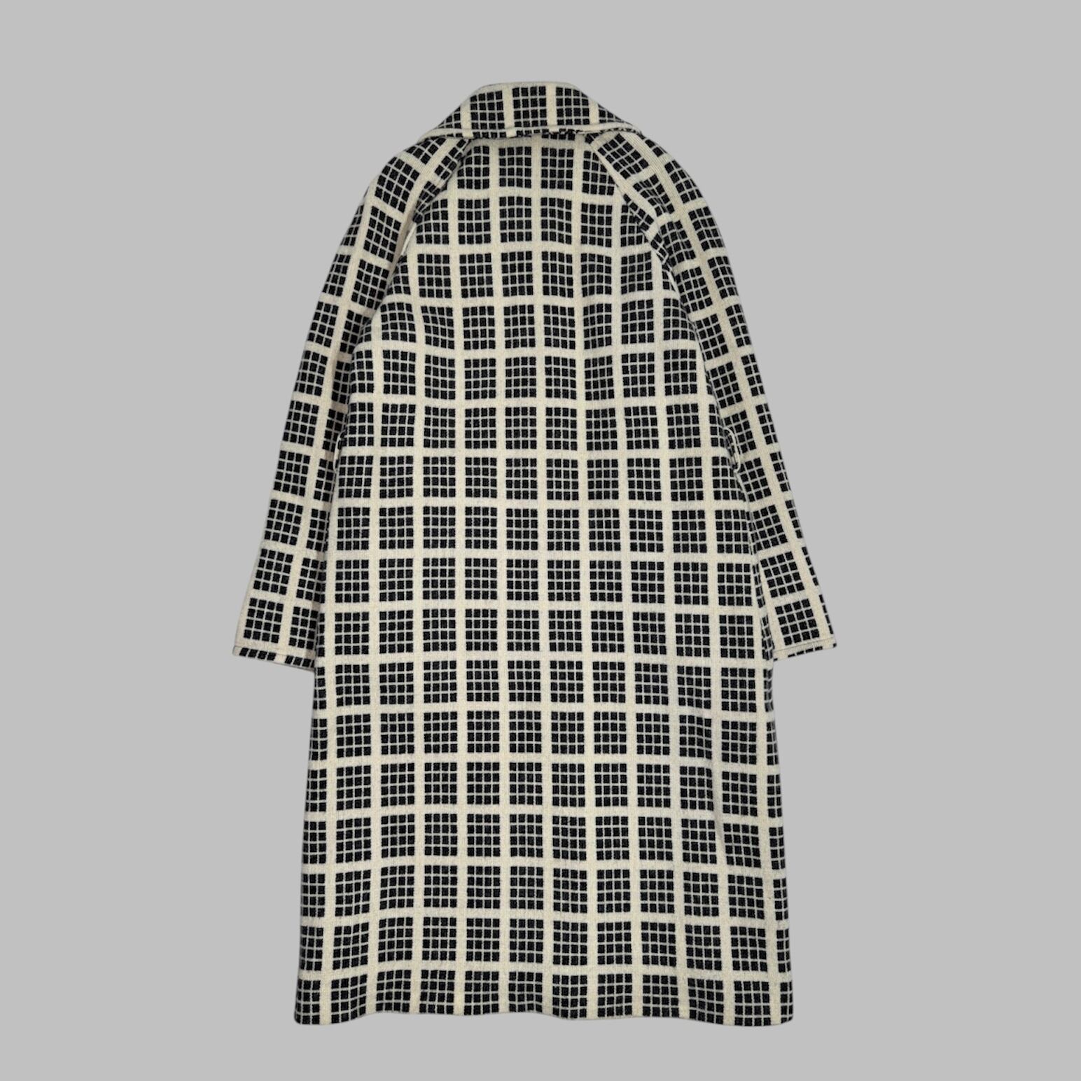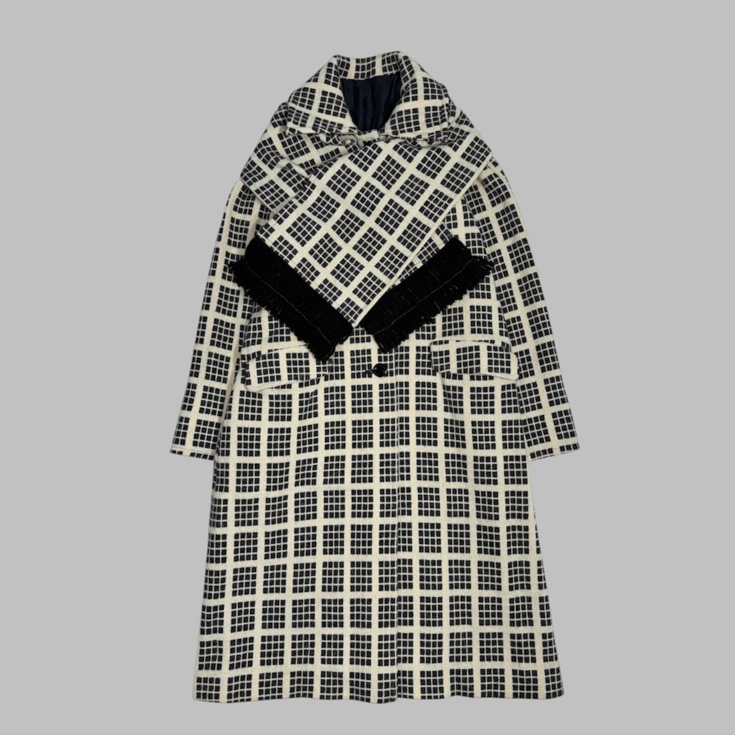 windowpane check coat with matching scarf