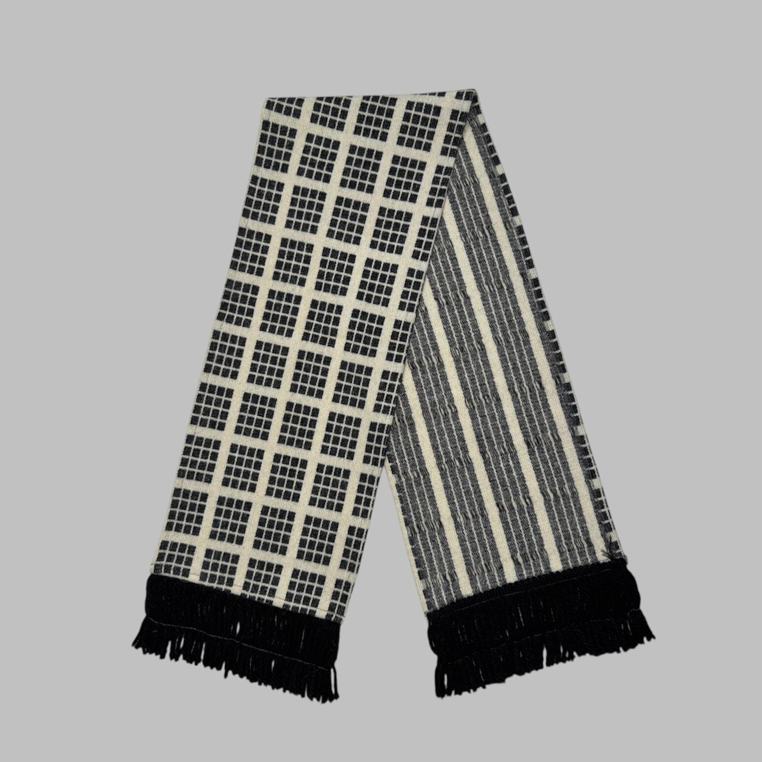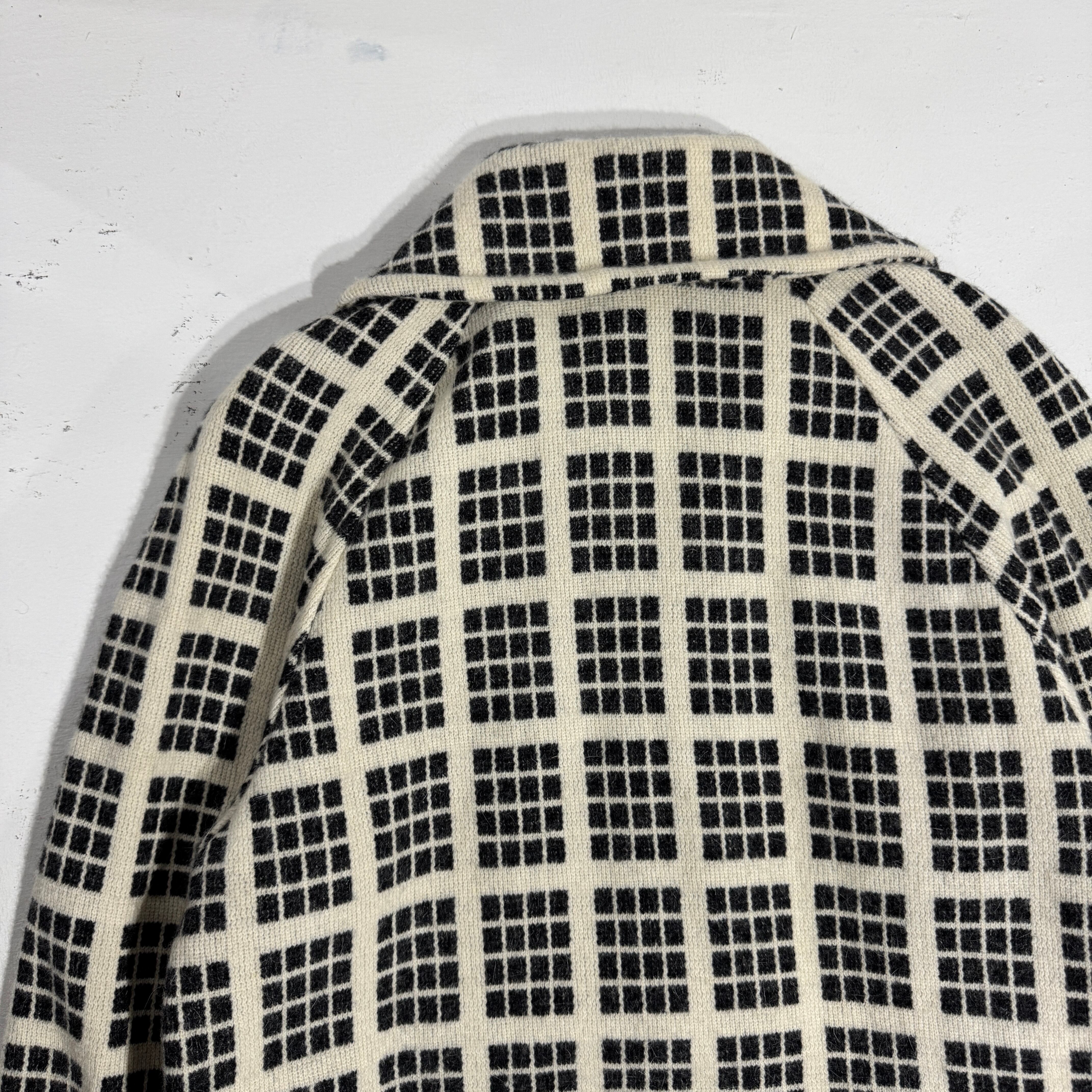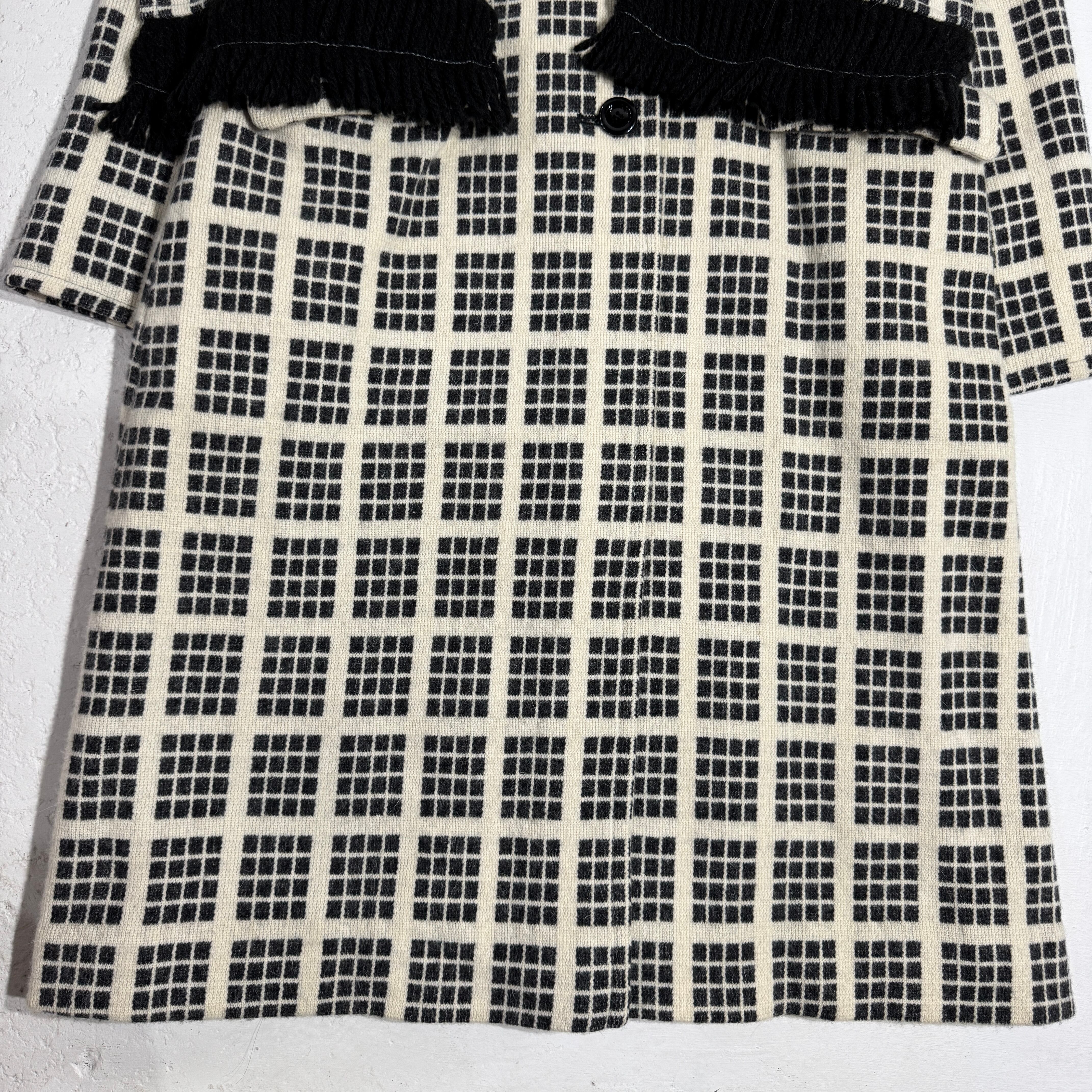 windowpane check coat with matching scarf