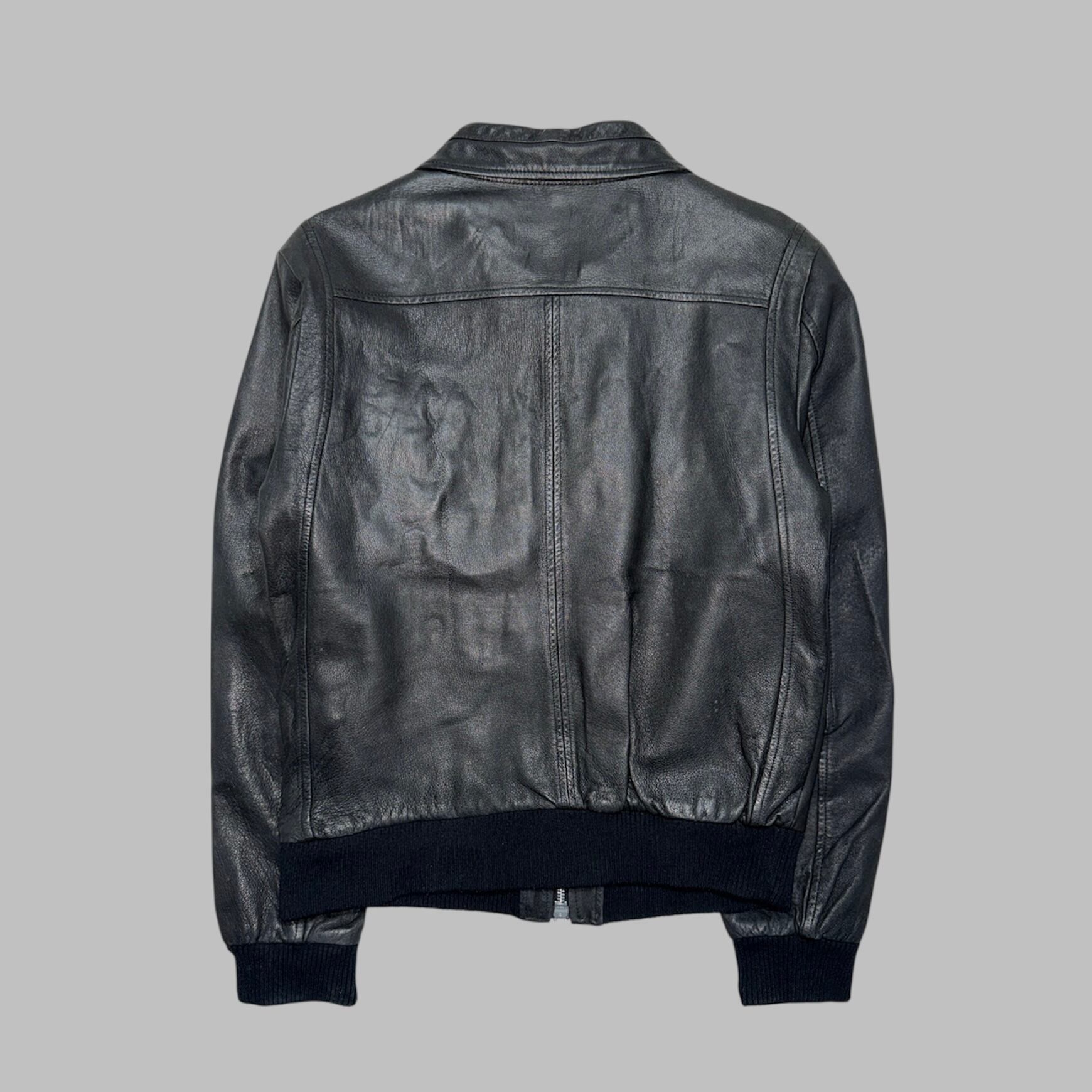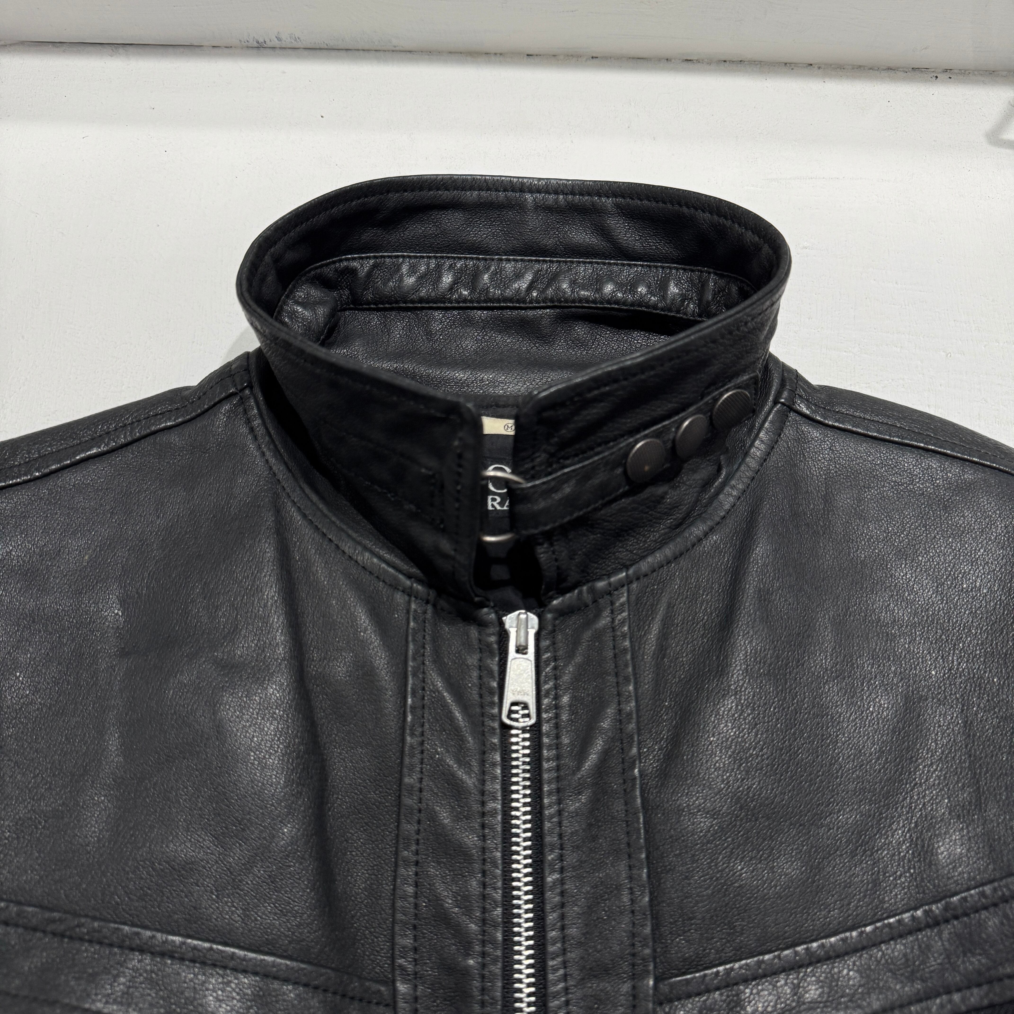 convertible collar cow leather jacket