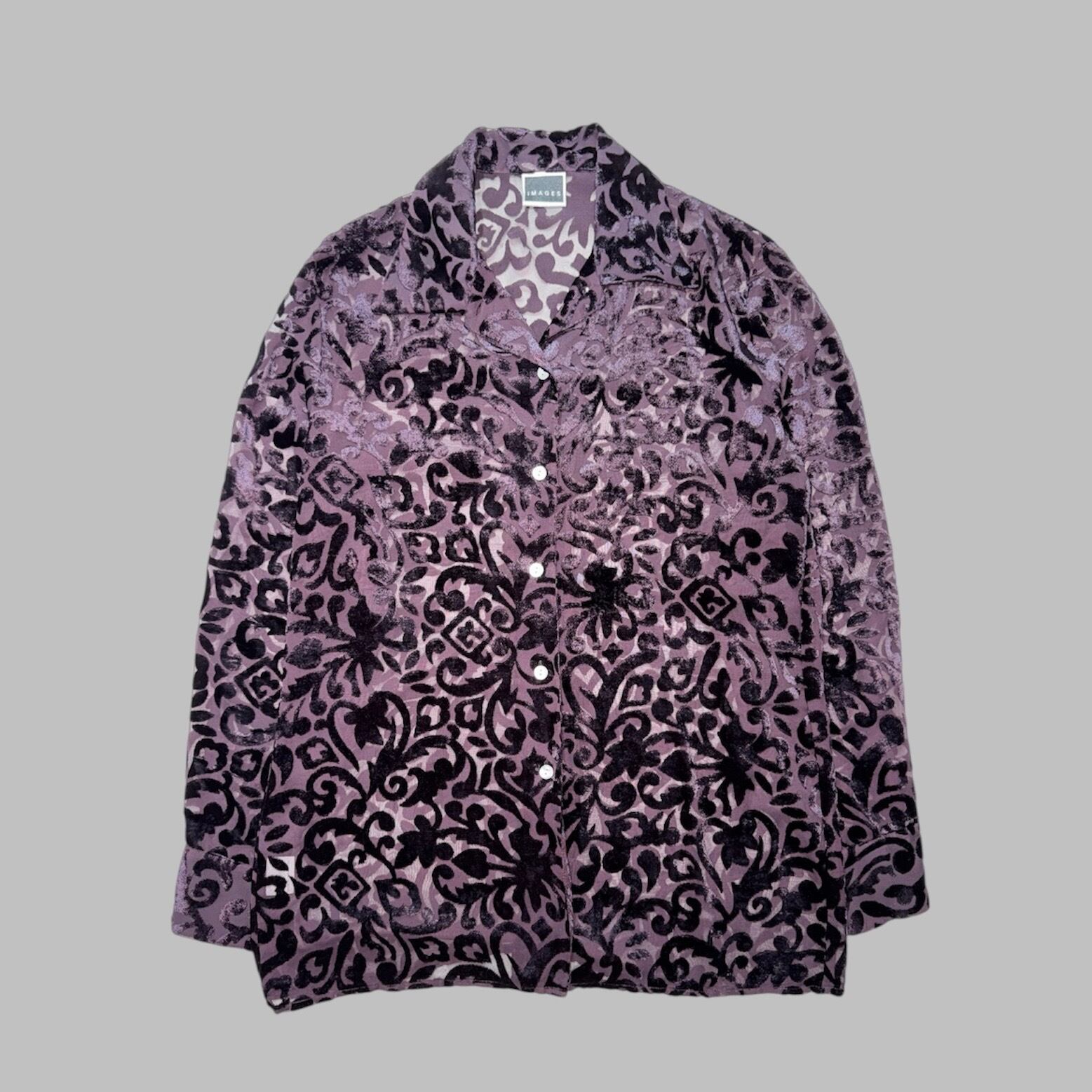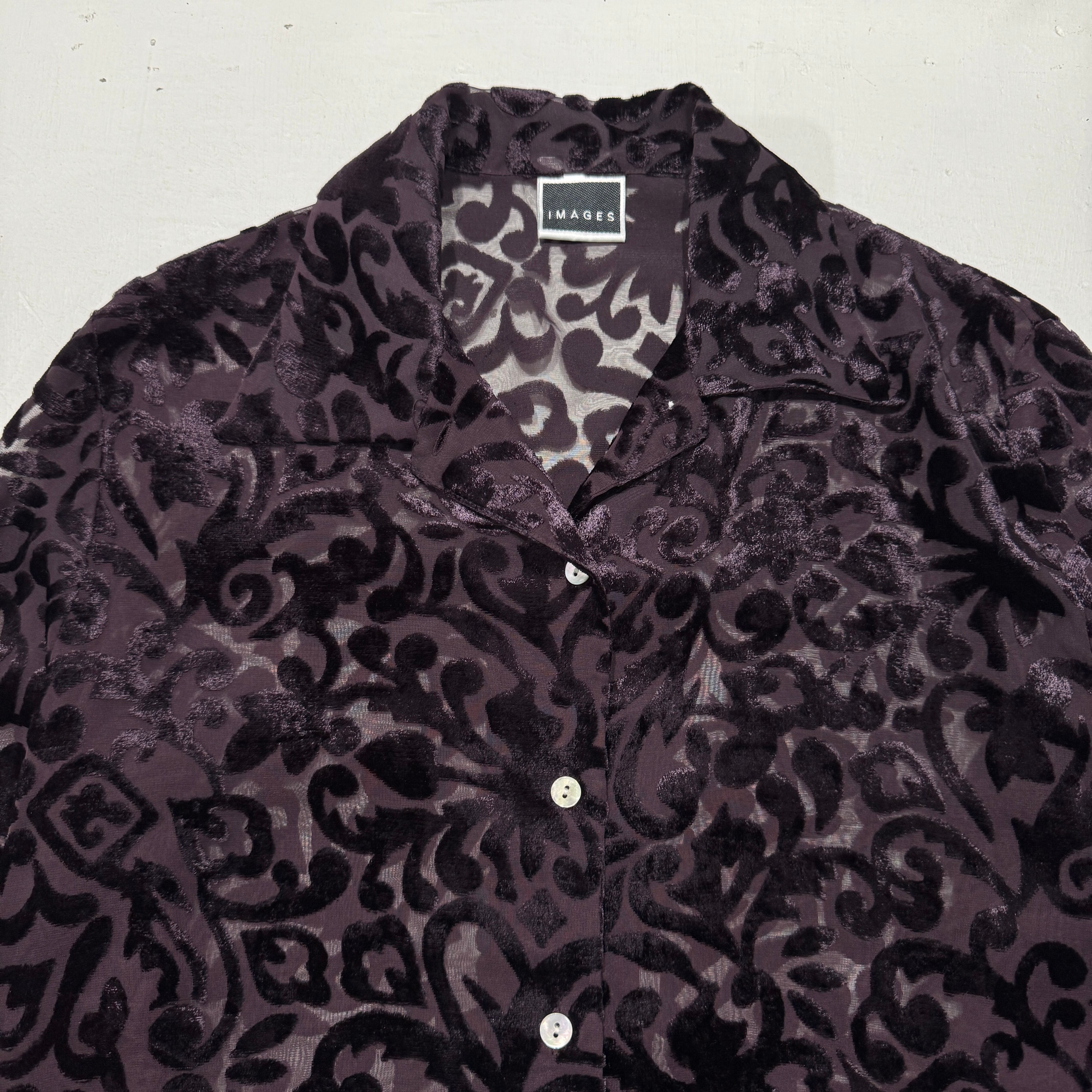 devoré velvet sheer damask pattern shirt