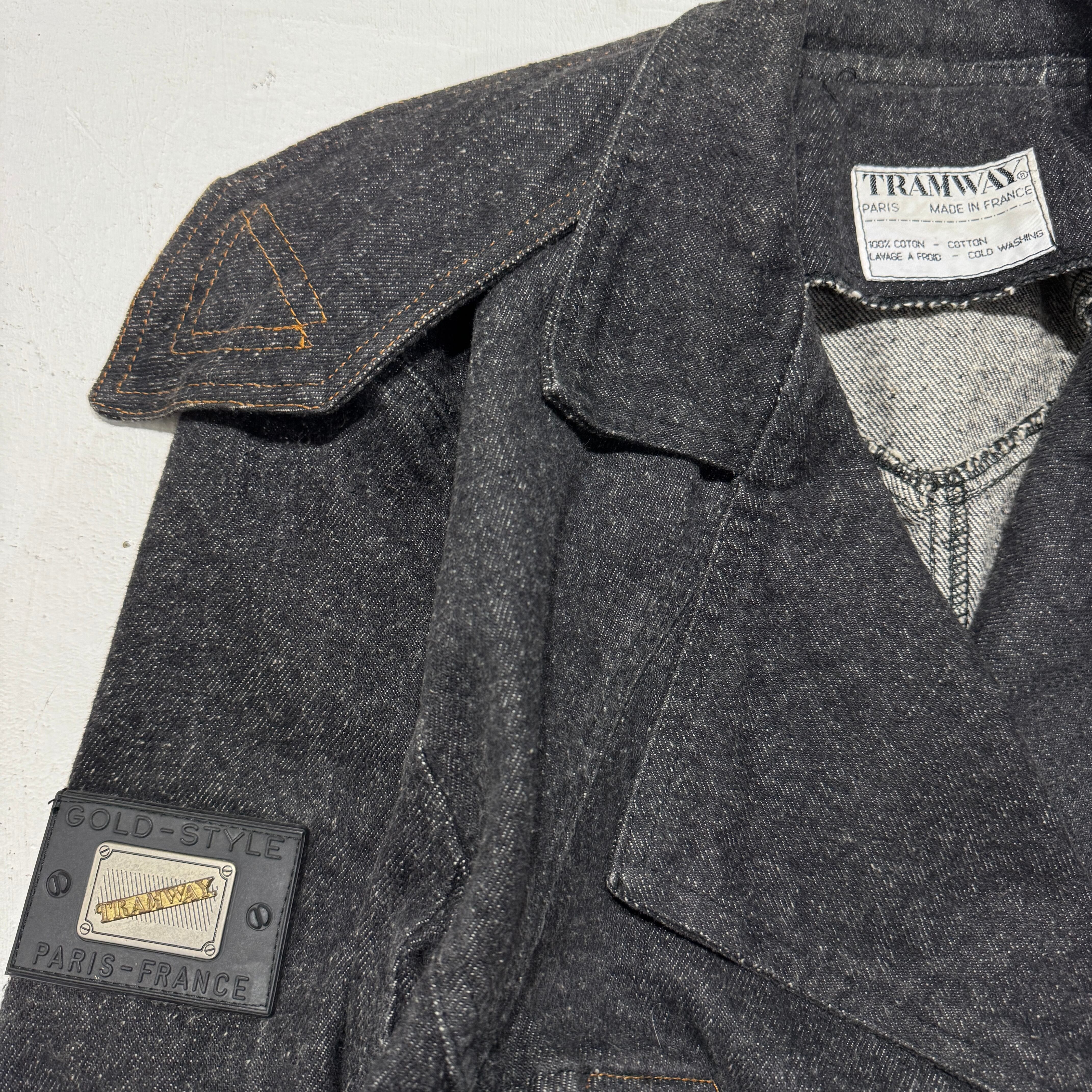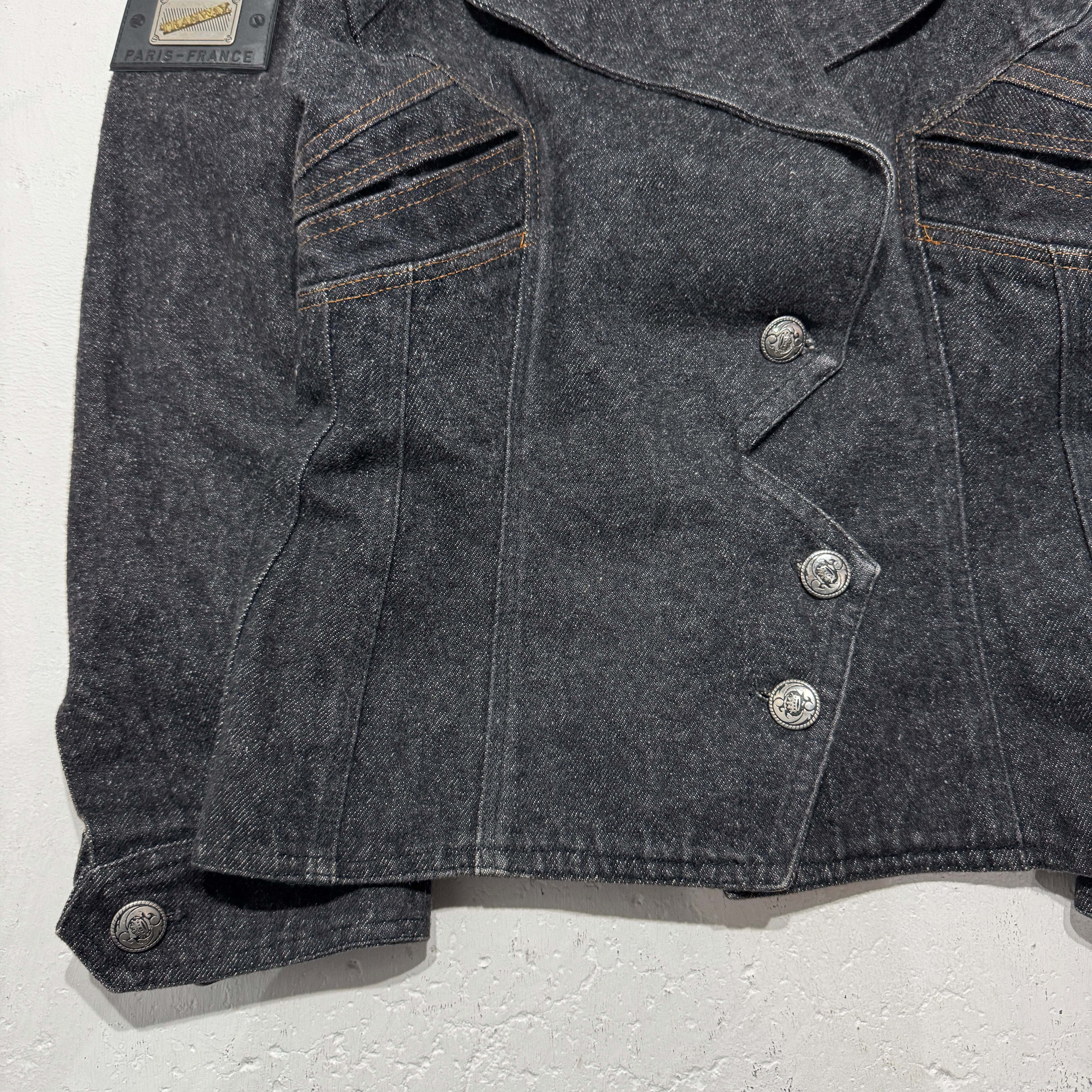 french vintage shoulder epaulettes denim jacket