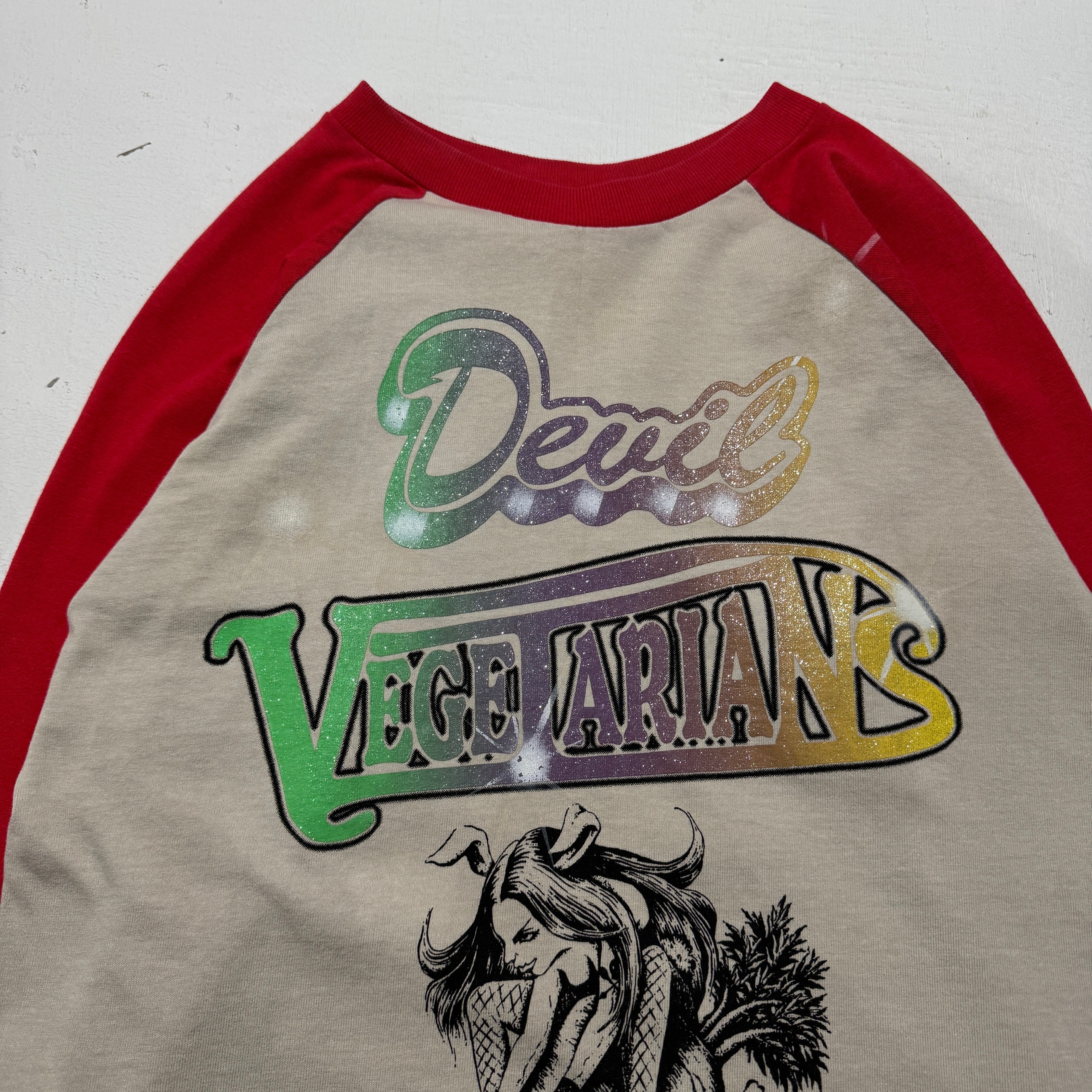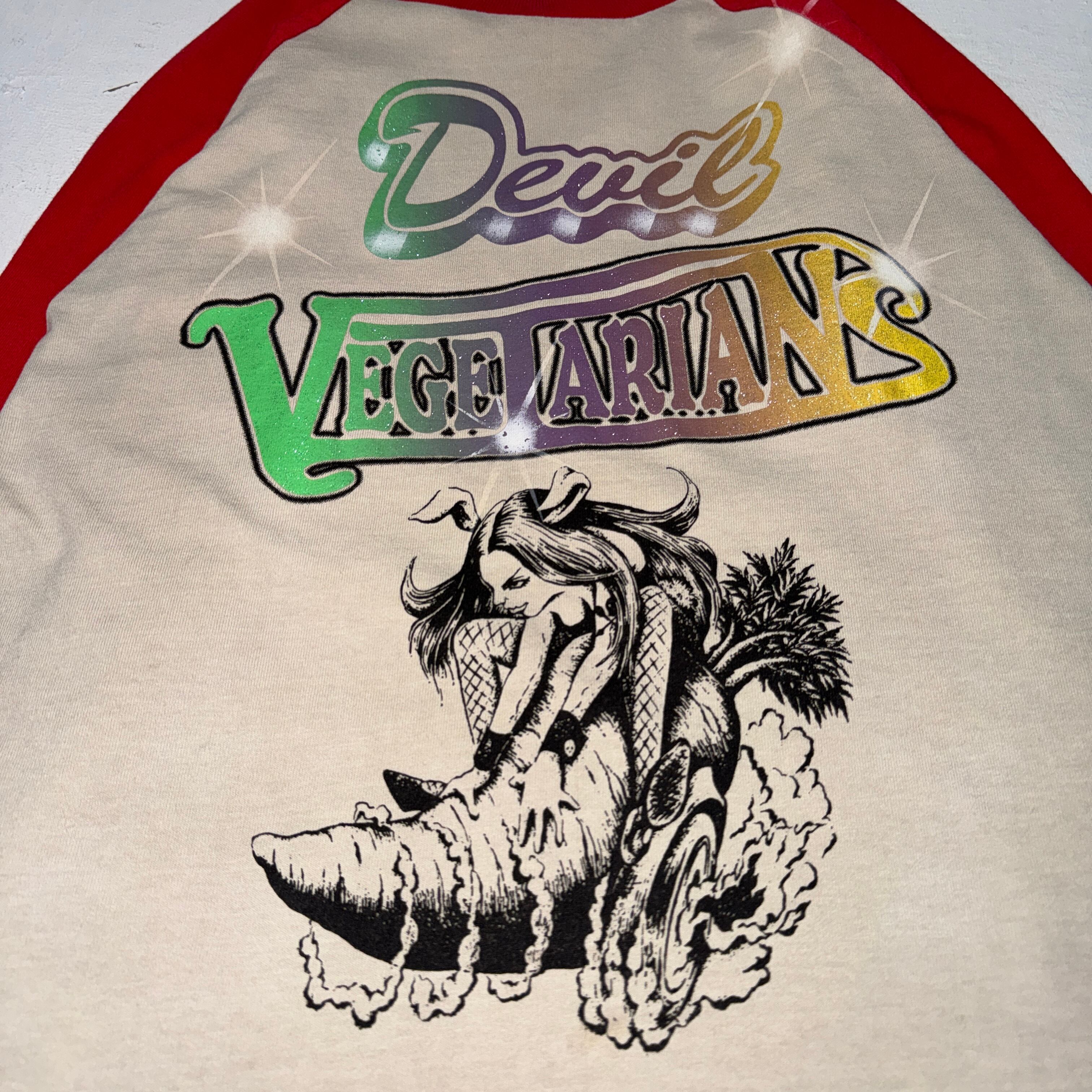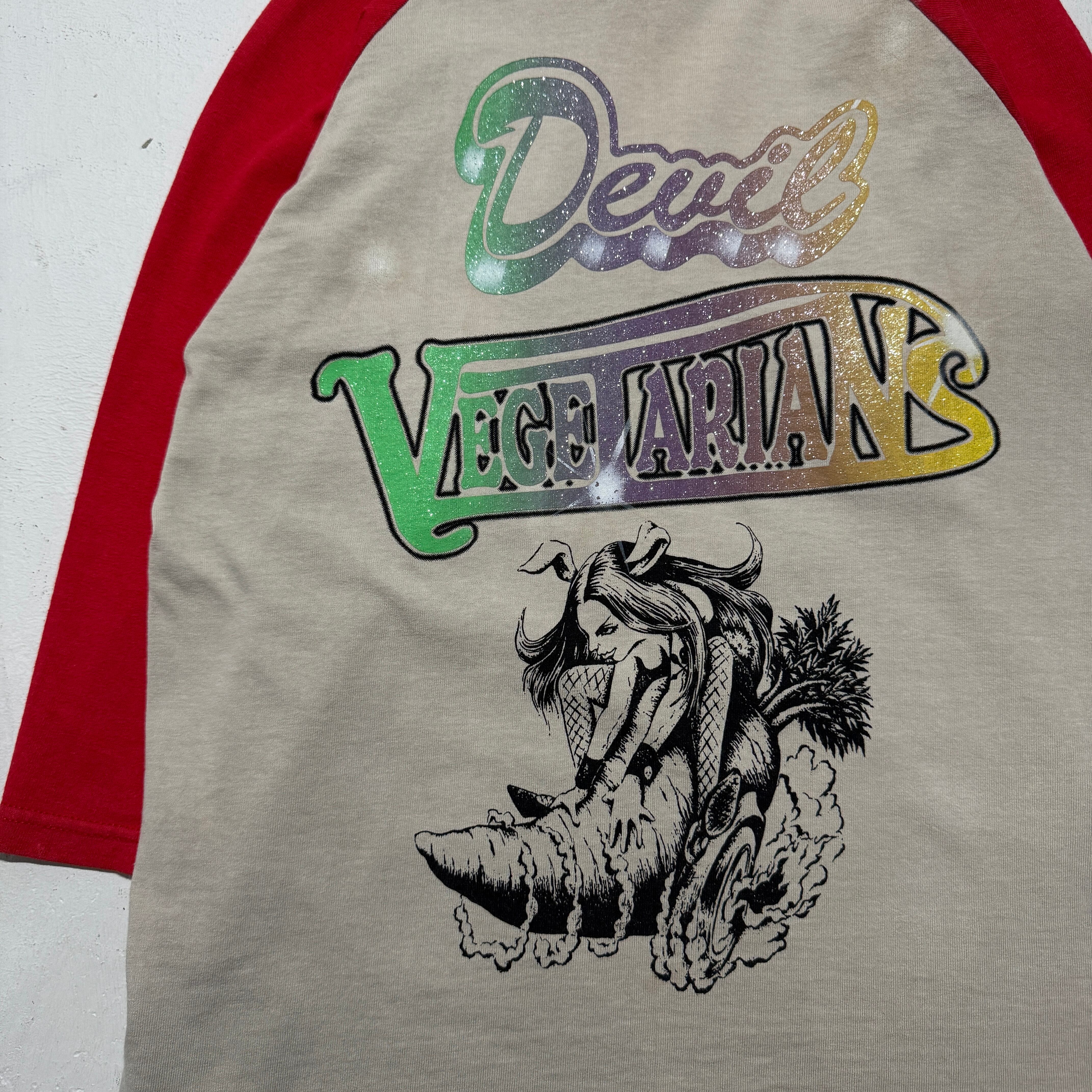 devil vegetarians shiny print raglan