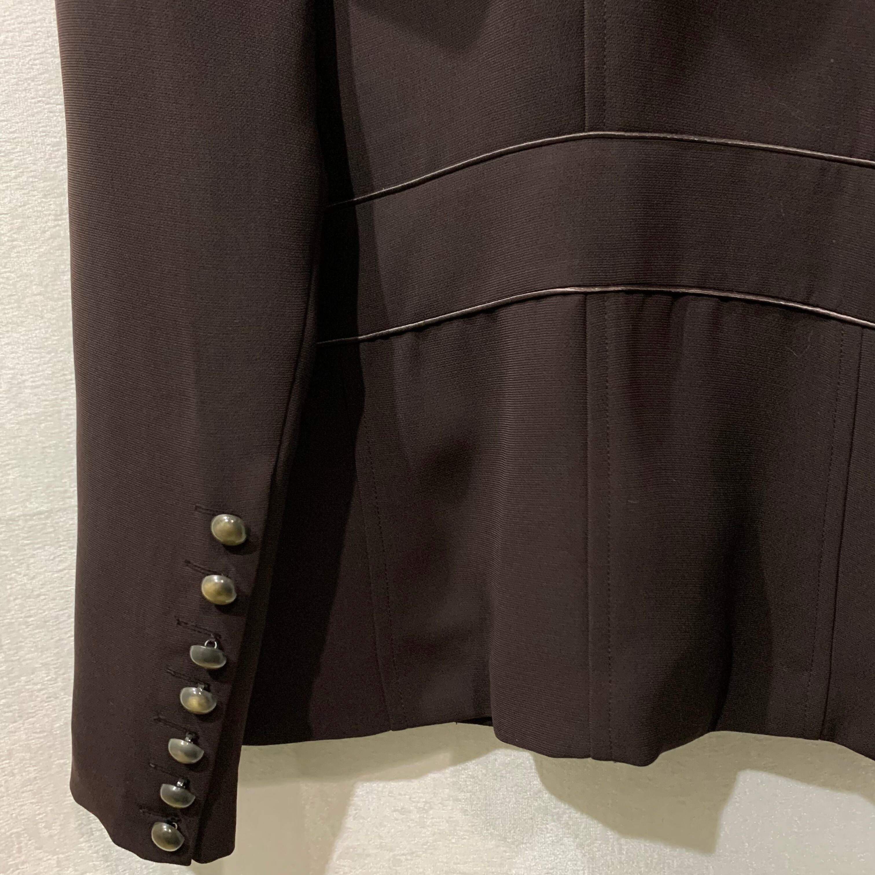 design no collar jacket brown