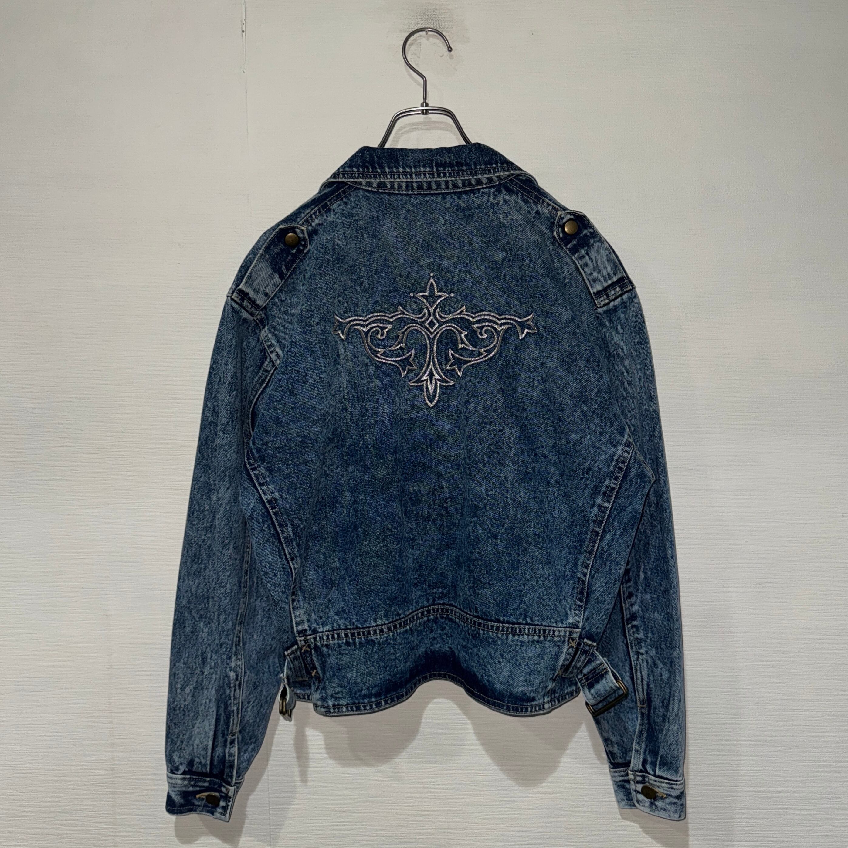 cross embroidery short denim jacket